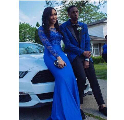 Royal Blue Sexy Mermaid Prom Dresses Jewel Long Sleeve Beads Chiffon Sheer Pageant Gowns Formal Evening Dresses robe de soirée