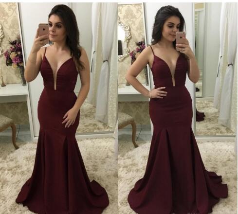 Burgundy Mermaid Prom Dresses Long Spaghetti Straps Sweep Train Formal Dresses Special Occasion Dress Evening Gowns robe de mariage
